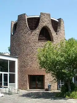 Gebaut wurde die Kirche aus rotbraunem Sandstein, der aus einem Steinbruch aus der Gegend von Landstuhl (Pfalz) stammt und sowohl innen als auch außen roh belassen wurde. Das 80 cm dicke Sandsteinmauerwerk verleiht dem Gebäude eine monumentale Wirkung[1].