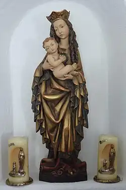 Am 22. August 2004 wurde die Kapelle unter dem Namen Maria Königin des Friedens wieder eingeweiht. Drei Schnitzfiguren schmücken das Innere: Die Mutter Gottes mit Kind und Krone als Königin, der Heilige Josef als Schutzpatron der Handwerker und Arbeiter und die Heilige Elisabeth, die Wohltäterin der Armen und Hilfsbedürftigen.