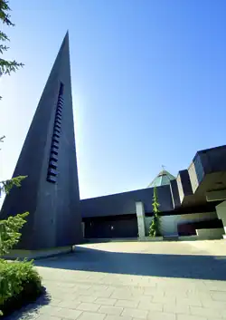 Die Kirche Mariä Krönung mit katholischer Akademie St. Paulus ist im Split-Level-System von zwei Seiten und Höhen durch Quartierstrassen erschlossen. Der Haupteingang führt über einen Innenhof direkt zum raumbeherrschenden Lichttrichter über dem Liturgiezentrum, das podiummässig erhöht ist. Zweiseitig angeschlossen sind abgeflachte Raumteile, die zur Privatandacht animieren. Der 500 Plätze fassende introvertierte Kirchenraum kommt ohne Stützen aus. Die wie in einem Raumgefäss über den Besuchern herabfliessende Helligkeit zwingt schon vom Eingang her zum Blick nach oben. Alle Sichtverbindungen nach aussen sind unterbunden. Der Kirchenraum gleicht einem atmenden Organismus, der «im Himmel» Luft holt.[17]