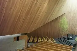 Im Untergeschoss der Kirche befinden sich die Krypta, die auch als Auditorium für 180 Menschen genutzt werden kann,[19] und der Kirchgemeindesaal mit 300 Plätzen sowie Vereinsräume. Von der Carl-Spitteler-Strasse aus gesehen an der linken Seite der Kirche wurde das Pfarrhaus angebaut. Auf der rechten Seite der Kirche befindet sich das Gebäude, das für die Paulus-Akademie, die erste katholische Akademie der Schweiz, erbaut wurde. Neben Empfangs- und Büroräumen befinden sich in diesem Bau auch Konferenzräume, ein Speisesaal für 90 Personen sowie ein Wohntrakt mit 10 Einzelzimmern.[20]