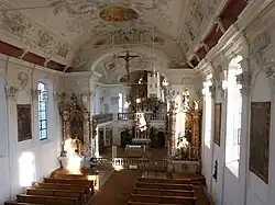 Am Chorbogen befindet sich ein Epitaph aus Sandstein für Andreas Unsinn († 1774). Die schlichte Sakristeitruhe stammt aus dem Anfang des 18. Jahrhunderts, ebenso der zweitürige mit Pilastern und Gebälk verzierte Wandschrank in der Sakristei. Die drei Holztafeln in der Sakristei sind mit 1815 bezeichnet. Das Chorgestühl von Martin Eberlin stammt von 1692.