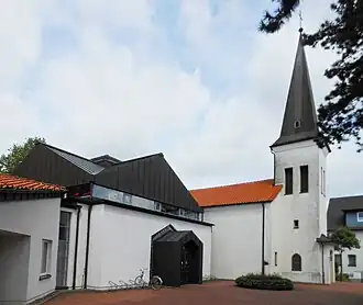 Von Süden wird der moderne Anbau sichtbar, heute der eigentliche Raum der versammelten Gemeinde. Auf quadratischem Grundriss erheben sich die weiß verputzten Wände bis zu einem umlaufenden Buntglasfensterband. Darüber steht das kupferverkleidete Kreuzsatteldach mit einer pyramidenförmigen Mittellaterne. Aus der Ostwand tritt der Portalvorbau hervor, aus der Westwand eine kapellenartige Nische, beide ebenfalls kupferverkleidet.