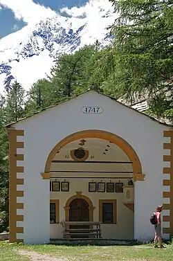 - ↑ Pfarrei St. Bartholomäus Saas Grund: Kapellenweg mit Hoher Stiege. Abgerufen am 22. September 2021