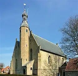 Die Mariakerk ist eine zweischiffige frühgotische Hallenkirche im Stil der Scheldegotik. Das südliche Schiff entstand nach 1250, das nördliche wurde zu Beginn des 14. Jahrhunderts hinzugefügt. Der ursprüngliche Westturm, Sint Lambertustoren (St. Lambertusturm) genannt, der auch als Seezeichen für die Schifffahrt diente, wurde wegen Einsturzgefahr 1677 abgebrochen. Als Ersatz wurde ein Dachreiter mit Glocke errichtet.