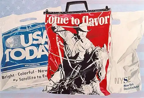 Baldenweg sieht unser Zeitalter u. a. als ein Plastikzeitalter[1]. Ein Hauptakteur unserer plastisch-fantastischen Welt ist für Baldenweg die Plastiktüte, die sowohl die ästhetischen wie die kommerziellen, globalisierten sowie interkulturellen Aspekte der Jetztzeit repräsentiert. Die Plastiktüte erlaubt sofortige Assoziation, aber auch Befremdungsmomente. In letzter Zeit kamen weitere Kunststoff-bezogene Themen hinzu, etwa die Kreditkarte.[2] Ihr Stil erinnert an Pop-Art in einer photorealistischen Malweise.