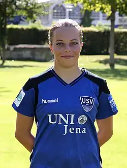 - ↑ FF USV Jena präsentiert Team für neue Saison ( des vom 25. August 2016 im Internet Archive) Info: Der Archivlink wurde automatisch eingesetzt und noch nicht geprüft. Bitte prüfe Original- und Archivlink gemäß Anleitung und entferne dann diesen Hinweis.