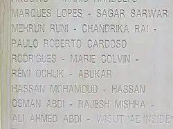 - ↑ Danica Kirka: Respected American war journalist Marie Colvin killed in bombardment in Syria. Associated Press, 22. Februar 2012 (englisch).