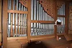 - Bemerkungen: Schleiflade, mechanische Spiel- und Registertraktur, freistehender Spieltisch