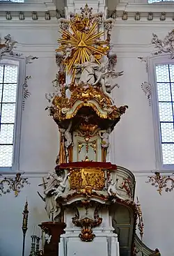 - ↑ Norbert Lieb: Barockkirchen zwischen Donau und Alpen. 6. Auflage. Hirmerverlag, München 1992, ISBN 978-3-7774-5420-7, S. 63.