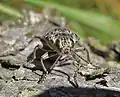 Die bis zu 80 Millimeter langen Larven haben einen hinten sehr schmalen, langgestreckten, vorne stark verbreiterten und abgeflachten Körper. Sie entwickeln sich im Holz von toten morsch werdenden Kiefern, besonders in deren Baumstümpfen.