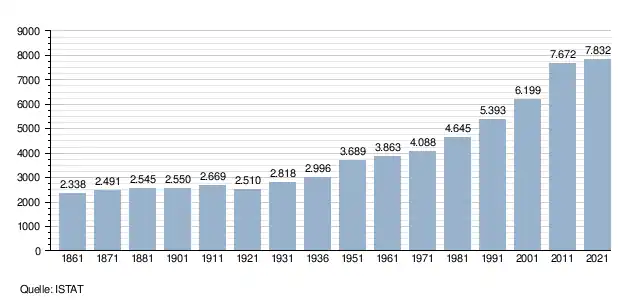 - ↑ Bilancio demografico e popolazione residente per sesso al 31 dicembre 2024. ISTAT. (Bevölkerungsstatistiken des Istituto Nazionale di Statistica, Stand 31. Dezember 2024).