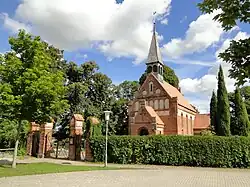 Die Marihner Kirche wurde 1904/05 erbaut, die Friedhofsmauer ist gut erhalten.