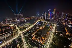 In Marina Bay findet alljährlich der Formel-1 Grand-Prix von Singapur statt. Der enge Stadtkurs, der die meisten genannten Sehenswürdigkeiten passiert, wird nachts befahren und gilt als eines der Highlights der modernen Formel-1. Der Kurs wurde erstmals 2008 befahren und ist mit 23 Kurven einer der kurvigsten und fahrerisch anspruchsvollsten der Formel-1. Das Rennen und vor allem die Beleuchtung der Strecke ist mit großem Aufwand verbunden, aber macht das Rennen einzigartig.[4]
