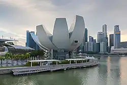- ArtScience Museum. Das von Mosche Safdie entworfene Museumsgebäude erinnert von außen an eine geöffnete Lotosblüte und zeigt auf 3 Etagen wechselnde Ausstellungen.