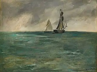 - ↑ Die Bezeichnung Zwei Segelboote auf stürmischer See findet sich im Werkverzeichnis von Sandra Orienti, S. 88 und in Nadine Engel, Rebecca Herlemann: Renoir, Monet, Gauguin. Bilder einer fließenden Welt: Die Sammlungen von Kojiro Matsukata und Karl Ernst Osthaus, S. 366.