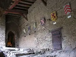 - Aufgang durch Fuchstor und Schartentor mit Gusserker, über die Reitertreppe vorbei an den Wappen aller Burgbesitzer von den Eppsteinern im 13. Jahrhundert bis zur Deutschen Burgenvereinigung heute