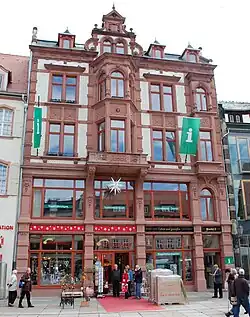 Das heutige Gebäude wurde 1894/95 im Stil der Neorenaissance vom Braunschweiger Architekten Friedrich Staeding für das Modehaus Ihlfeld & Kramer errichtet. Im Quedlinburger Denkmalverzeichnis ist es als Wohn- und Geschäftshaus eingetragen. Die Fassade ist geprägt durch den Wechsel von Werkstein und Klinker. Unter der Türschwelle des Neubaus wurde am 9. Juli 1894 eine Urkunde eingemauert, die die Geschichte und aktuelle Situation des Geschäfts schilderte.[3] Im Geschäft wurde neben Stoffen auch Fertigkleidung und Wäsche jeglicher Art sowie Federbetten verkauft. Für Federn wurde eine Reinigung angeboten. Darüber hinaus wurden sowohl für Damen als auch für Herren Maßanfertigungen geschneidert. Die Arbeiten erfolgten in den erhalten gebliebenen alten Hintergebäuden. Zunächst saßen noch Schneider traditionell auf Tischen, später arbeiteten Schneiderinnen an Nähmaschinen. Bereits 1887 gründeten Ihlefeldt und Kramer gemeinsam in der Marktstraße 1 die Quedlinburger Möbel- und Ausstattungshalle, die ab dem Jahr 1894 um das Nachbargebäude Markt 16 erweitert wurde.[4]