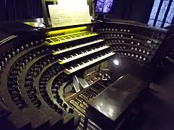 Der letzte Umbau und Erweiterung datiert aus dem Jahr 1982 (Gebr.Oberlinger, Windesheim), bei der man die Anzahl der Register auf insgesamt 85 (73 in der Hauptorgel, 12 in der Chororgel) erweiterte. 20 davon stammen noch aus der Ursprungsorgel von 1863.[9] Das Instrument hat insgesamt 6198 Pfeifen. Die Spiel- und Registertrakturen sind elektrisch. Der Hauptspieltisch stammt aus dem Jahre 1982 und ist nach dem Vorbild französischer Cavaillé-Coll-Orgeln angelegt.[10] Er verfügt über eine digitale Aufnahme- und Wiedergabeeinrichtung, welche bei Aktivierung die Ton- und Registermagnete ansteuert. Das Chamadenwerk ist frei ankoppelbar.