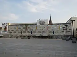 Mit dem Baubeginn des HKB wurde der zentrale Platz der Bezirksstadt am 1. Mai 1963 in Karl-Marx-Platz umbenannt und behielt diesen Namen bis zum 3. Oktober 1991.[5] 1969 wurde auf dem Karl-Marx-Platz ein Karl-Marx-Denkmal des Bildhauers Gerhard Thieme aufgestellt. 1995 zunächst versetzt, 2001 abgebaut und eingelagert, lieferte das Denkmal und seine künftige Verwendung über mehrere Jahre Anlass für heftige öffentliche Diskussionen. Im November 2018 fand das Karl-Marx-Denkmal etwas dezentral am „Schwanenteich“, dem Rest eines einstigen Mühlenteichs im Bereich des südlichen Friedrich-Engels-Ring einen neuen Standort.