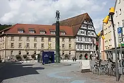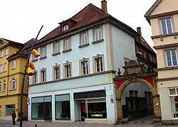 Die Post ist ein 1753 für den Patrizier Franz Achillis Stahl, Edler von Pfeilhalde durch den Stadtbaumeister Johann Michael Keller erbautes Barockhaus am Marktplatz. Als 1773 die Erhebung des Eigner in den Adelsstand erfolgte, wurden dort die Feierlichkeiten, unter anderem mit einer Hausillumination, vorgenommen. Hier logierten 1792 Johann Wolfgang von Goethe und Erzherzog Carl, 1813 König Friedrich von Württemberg und 1814 der Dichter Ludwig Uhland. Das Gebäude diente bis 1830 und dann wieder ab 1875 auch als Post und steht in architektonischer Wechselwirkung zu Marktplatz 16. Im Jahre 1888 kam es zu einer neubarocken Erweiterung nach Osten. In den 1960er-Jahren folgte ein postgelber Anstrich, in den 2000er-Jahren dann die Restaurierung mit dem ursprünglichen rosa Anstrich. Die Räumlichkeiten der Post wurden durch ein Modehaus übernommen.