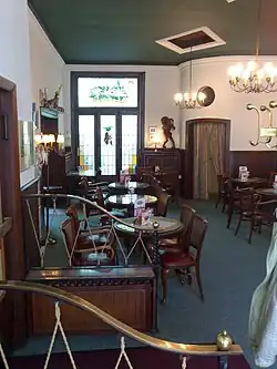 Die Familie Fischer ließ nach dem Erwerb des Hauses den Bereich des ehemaligen Möbelgeschäft zu einem Café umbauen, das 1920 unter dem Namen „Café Eulenspiegel“ öffnete und durch den Konditormeister Heinrich Fischer betrieben wurde. Dieser war ein Sohn des Landwirtes Karl Fischer und stammte aus dem sogenannten „Kalten Hof“ in Warburg, Paderborner Tor 123, Nähe Schützenplatz.[10] Das Café entwickelte sich über drei Generationen zu einem der führenden Kaffeehäuser der Stadt und warb unter anderem damit, dass dort auch „Nederlands gesproken“ wurde. In den 1950er Jahren wurde die zehn Stufen hohe, zweiläufige Freitreppe vor der Wohnhaustür entfernt und der Aufgang nach innen in den Flur gelegt. In den 1970er Jahren erfolgten zeittypische Modernisierungsmaßnahmen. Dabei wurde u. a. die rechts von der Wohnhaustür gelegene Backstube mit den zugehörigen Fenstern auf das niedrigere Niveau des Gastraumes heruntergesetzt, der zugehörige Teil des Gebäudesockels entfernt und Fassadenverkleidungen im Cafébereich angebracht. Anfang 2017 wurde das Café vom letzten Betreiber Heinrich Wilhelm Fischer jun. und seiner Frau Gundula, geborene Konerding, geschlossen. Die in einem schlichten Stil der 1920er bis 50er Jahre mit leichten Anklängen an die Rokokozeit gestaltete Inneneinrichtung ist noch erhalten.
