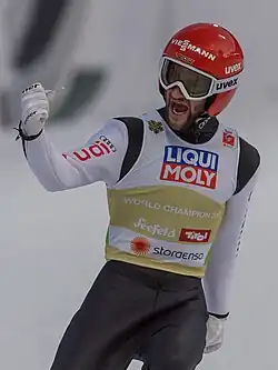 Markus Eisenbichler (* 3. April 1991 in Bad Reichenhall[1]) ist ein ehemaliger deutscher Skispringer. Sein größter Erfolg war der Weltmeistertitel im Einzel von der Großschanze bei den Nordischen Skiweltmeisterschaften 2019 in Seefeld. Zudem wurde er Zweiter bei der Vierschanzentournee 2018/19, Mannschaftsweltmeister 2019 und 2021 sowie Mixed-Team-Weltmeister 2017, 2019 und 2021. Mit sechs WM-Goldmedaillen, davon fünf im Team, ist er aktuell der erfolgreichste deutsche Skispringer der WM-Geschichte.