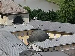 - Ursulinenklosterstöckl Nr. 19 und Museum Carolino Augusteum Nr. 17, um 1920 – Ursulinenkloster Salzburg (heute Haus der Natur bzw. Studentenzentrum), Land Salzburg > Kultur > Burgen, Schlösser und Klöster