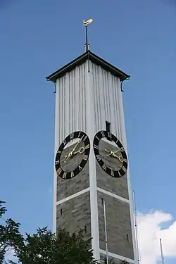 Der Kirchturm birgt ein fünfstimmiges Geläut, welches in der Tonfolge As° c' es' f' as' erklingt. Die Glocken wurden von der Firma H. Rüetschi gegossen, wobei die kleineren Glocken 1948 hergestellt wurden und die grösste Glocke im Jahr 1953 nachfolgte.[3]