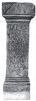 Ein zweiter, aus demselben Material gefertigter und ebenfalls diesem germanischen Mars zugeordneter Stein ist der „DEO MARTI“-Stein (127 × 55 cm). Er ist aufwändiger gestaltet und an Schmalseiten und Kapitell mit Dekor versehen. Auf der linken Seite sind Axt und Messer, auf der rechten Seite Opferschale und Krug dargestellt.