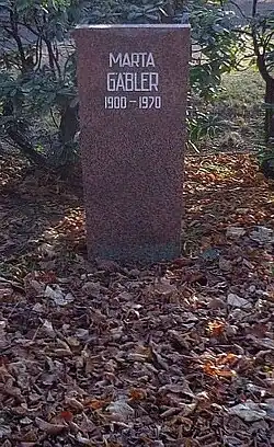 Marta Gäbler starb nach langer schwerer Krankheit, mittlerweile von ihrem Mann geschieden, am 25. Januar 1970 in Berlin. Ihre Urne wurde in der Grabanlage Pergolenweg des Berliner Zentralfriedhofs Friedrichsfelde beigesetzt.