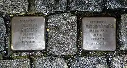 - ↑ Vgl. z. B.: Ausstellung „Pogromnacht“ – Stolpersteine. In: 7. Nacht der Jugend 2004. www.nachtderjugend.de, 2004, archiviert vom (nicht mehr online verfügbar) am 24. Oktober 2007; abgerufen am 27. Dezember 2009.