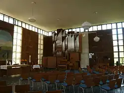 An der westlichen Seitenwand neben dem Altar befindet sich eine zweimanualige Orgel der Firma Friedrich Weißenborn aus Braunschweig von 1970, die für gottesdienstliche und konzertante Nutzung gleichermaßen gut geeignet ist. Sie wurde im Jahr 1982 von der Warschauer Orgelbaufirma Gebrüder Kaminski umgebaut, auf 22 Register erweitert und besser bespielbar gemacht.[2] 2008 wurde die letzte Generalüberholung vorgenommen.[3]