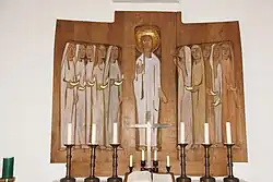 Das Altarbild zeigt das Gleichnis von den klugen und törichten Jungfrauen sowie ein Kreuz und eine Tür, durch die Christus kommt.[2] Die Kirche ist ein geschütztes Baudenkmal.