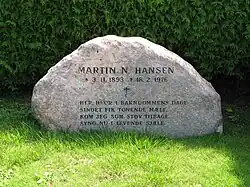- ↑ Vgl. Digitalisat der standesamtlichen Geburtsurkunde von Martin N. Hansen bei arkivalieronline hier (rechte Seite) und Christensen, Martin N. Hansen (wie unter Literatur), S. 242.