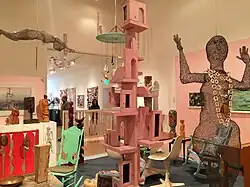 Sie schuf Tausende von Werken, die aus einem lebenslangen, unermüdlichen Experimentieren mit nahezu allen denkbaren Medien stammten: Skulpturen aus Harz, Holz, Aluminiumfolie und Metall, kleine Glas- und Keramikarbeiten, Arbeiten auf Papier, Lithografien, handbemalte Fliesen, Mobiles und Töpferwaren.[20][5] Im Inneren des Hauses ist fast jede Oberfläche verziert; Nohl fertigte Glasmalereien an, bemalte ihre Möbel, Beleuchtungskörper und Wände mit Teppichflicken als Pinsel und stellte ihre Gemälde, Glasskulpturen, Holzassemblagen, Drahtfiguren und Marionetten auf.[9][17]