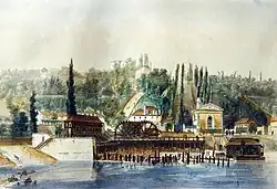 - ↑ Joseph von Baader: Projet d’une nouvelle machine hydraulique pour remplacer l’ancienne machine de Marly suivi de l’apperçu d’un autre moyen de fournir des eaux a la ville et aux jardins de Versailles, sans employer la force motrice de la riviere; Paris, Renouard, 1806.