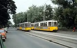 1997 trafen die ehemaligen Freiburger GT4 116–118 in Brandenburg an der Havel ein. Sie dienten als Ersatz für die Gothawagen und verkehrten vor allem auf der Überlandstrecke Anton-Saefkow-Allee – Kirchmöser-West.[33] Die Zweirichtungsfahrzeuge konnten zudem im Pendelverkehr bei Baustellen eingesetzt werden. Nach Stilllegung der Strecke nach Kirchmöser am 28. September 2002 wurden die drei GT4 im Betriebshof in der Bauhofstraße abgestellt und ein Jahr später verschrottet.