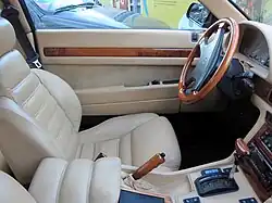 Die äußeren Blechteile waren weitgehend neu gestaltet. Das Design verantwortete Marcello Gandini, der kurz zuvor mit dem Shamal bereits einen weiteren Biturbo-Ableger entworfen hatte. Dementsprechend war der Ghibli eine „stilistisch weniger aggressive“[4] Weiterentwicklung des Shamal; gelegentlich wurde er als „domestizierte Version des Shamal“ bezeichnet.[5] Maserati übernahm die vorderen Stoßstangen des Shamal und die auffällige Abdeckung der Wischerachsen und Lüftungsschlitze am unteren Ende der Windschutzscheibe. Die Kotflügel des Ghibli waren ebenfalls stark ausgestellt; sie erreichten allerdings nicht die Dimensionen der Shamal-Kotflügel. Auch die Scheinwerfereinheiten – je ein runder und ein viereckiger Scheinwerfer – waren gleich, allerdings befanden sie sich nunmehr hinter einer Glasabdeckung, was von vielen Beobachtern als eine stilistische Verbesserung empfunden wurde. Schließlich trug der Ghibli ebenso wie der Shamal einen höheren Kofferraumdeckel, der allerdings im Detail anders gestaltet war. Mit diesem Stilelement zitierte der Ghibli den zeitgenössischen BMW M3.[6] Der Innenraum war geprägt von Connolly-Leder und Echtholzapplikationen.