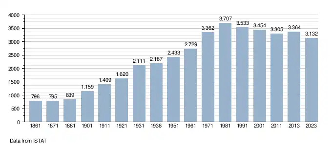 - ↑ Bilancio demografico e popolazione residente per sesso al 31 dicembre 2024. ISTAT. (Bevölkerungsstatistiken des Istituto Nazionale di Statistica, Stand 31. Dezember 2024).