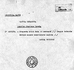 Am Nachmittag des 12. September kam es zu schweren Auseinandersetzungen zwischen Soldaten beider Nationen, als Wehrmachtssoldaten zwei italienische Artillerieabteilungen in ihrem Abschnitt entwaffneten. Gandin gab Befehl, keine Gegenmaßnahmen zu ergreifen, und verhandelte unter der Bedingung weiter, dass es keinerlei weitere Veränderungen am Status quo mehr geben dürfe, bis die Verhandlungen abgeschlossen seien. Zuwiderhandlungen würden von seinen Truppen mit Waffengewalt beantwortet.