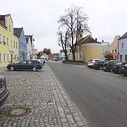 - Marktplatz, im 13. Jahrhundert in typisch wittelsbachischer Rechteckform angelegt, mit neuromanischer Marktkapelle von 1839