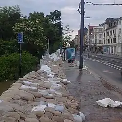 Die Elbhochwasser 2002, 2006 und 2013 haben einen Teil des Areals überflutet, welches teilweise im gesetzlich festgestellten Überschwemmungsgebiet der Elbe liegt und somit dauerhaft überschwemmungsgefährdet ist. Im Juni 2013 konnte das Elbehochwasser nur mit großem Aufwand an der Leipziger Straße gestoppt werden,[5] im Jahr 2002 konnte das Hochwasser nicht gestoppt werden. Die Landestalsperrenverwaltung Sachsen hat wegen der Hochwassersituation das Projekt abgelehnt.[6]