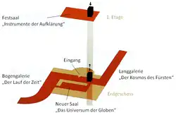 - Der „Lauf der Zeit“ in der Bogengalerie: die Geschichte der mechanischen Uhr vom 16. bis ins 19. Jahrhundert und Stationen für Bildschirmexperimente.