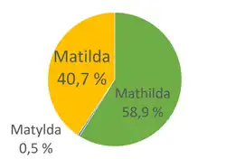 In Schweden zählte Mathilda bis 2005 zu den 100 beliebtesten Mädchennamen.[6]