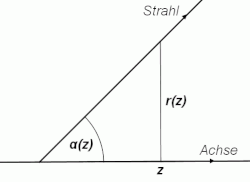 Der Winkel gibt dabei, da er die Neigung des Strahls darstellt, die Änderung von mit an. Im Rahmen der paraxialen Näherung, also nach dem Grenzübergang, mit dem und gegen Null gehen, gilt .