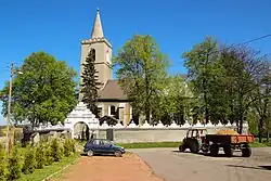 Der Kirchenbau besitzt architektonische Merkmale der Gotik und der Renaissance. Das zweijochige Langhaus besitzt an der südlichen Seite eine Vorhalle und ein zweijochig, dreiseitig geschlossenen Chor. An der Südfront schließt die Sakristei an, welche eine Loge im Obergeschoss besitzt. Der Glockenturm an der Westfront ist verziert mit rustizierten Ecken und bekrönt mit einer Attika aus Rundbögen und einem Spitzhelm.