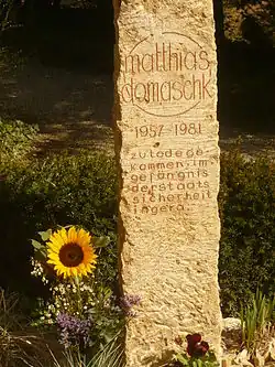 - ↑ Thomas Beier: Neues Ehrengrab für Matthias Domaschk am Nordfriedhof, in: TLZ vom 13. April 2011.