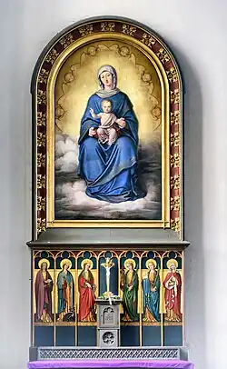 - Bilder auf den Seitenaltären in der Pfarrkirche St. Johannes der Täufer in Treis (Treis-Karden); Bild der Gottesmutter und Bild Johannes des Täufers; auch die Predella-Bilder darunter.