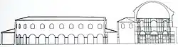 Geringe Spuren lassen darauf schließen, dass der gesamte Bau außen rot verputzt war. Die gesamte Ausstattung soll der Bedeutung dieser kaiserlichen Stiftung entsprochen haben. Im Inneren bedeckten aufwendige Inkrustationen in mehreren Reihen hochrechteckiger Marmorplatten beide Geschosse. Auch der Boden war mit quadratischen Platten (1,80 m Seitenlänge) aus Cipollino-Marmor ausgelegt. Im Gewölbe der Kuppel haben sich Abdrücke von Mosaiksteinen erhalten. Das Motiv des Kuppelmosaiks ist nicht mehr bekannt.