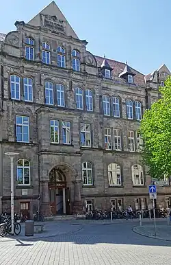 Die Schule umfasst das Hauptgebäude am Theaterplatz, die Turnhallen und die Außenstelle „Mini-Max“ am Albanikirchhof. Die Jahrgänge 8 bis 10 und 12 und 13 werden am Theaterplatz unterrichtet. Die Jahrgänge 5 bis 7 und 11 haben ihre Klassenzimmer im ehemaligen Gebäude der Luther-Schule. Beide Gebäude sind mit Fachräumen für die Naturwissenschaften, Musik, Kunst, Erdkunde und Informatik ausgestattet.